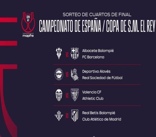 国王杯八强对阵:阿尔瓦塞特vs巴萨,贝蒂斯vs马竞