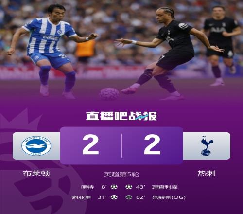 英超-热刺让2追2战平布莱顿 理查利森破门范赫克乌龙阿亚里世界波
